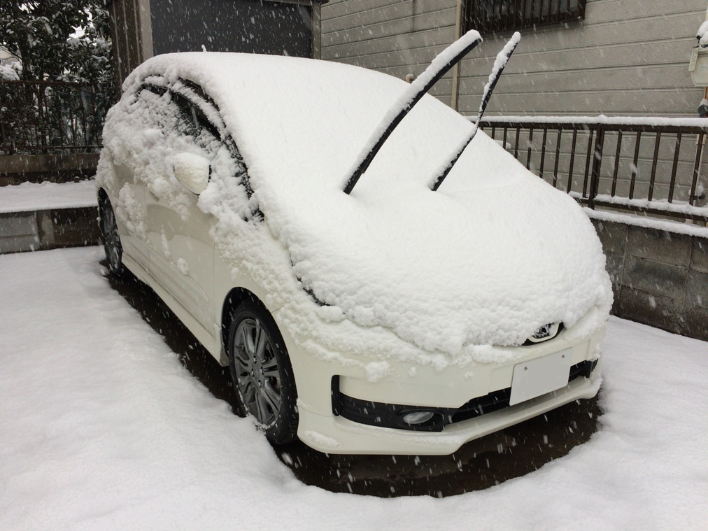 帰宅して驚いたのは車です。白のボディと相まって雪だるま状態。
