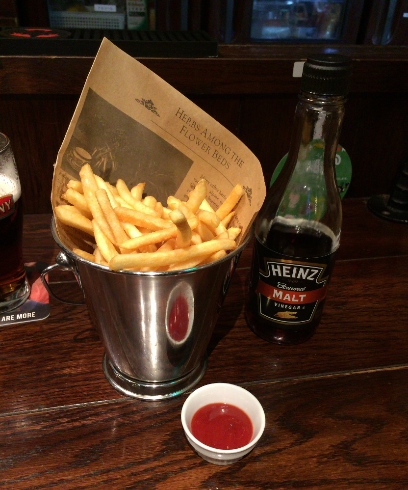 キルケニーのハーフ&ハーフとバケツに入ったフライドポテトをちびちび。