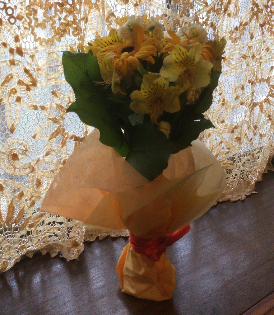 帰宅後、奥さんにガラス瓶に入れてもらいました。翌朝玄関に飾られて