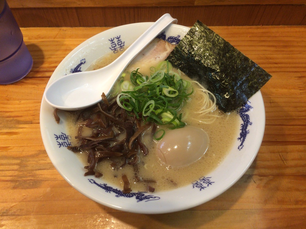 所謂ベーシックな博多ラーメンです。豚骨スープは独特の香りが強いん