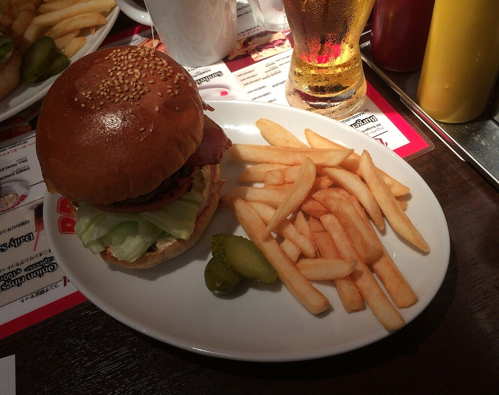 ハンバーガーにビールはかなり良い組み合わせです。油っこいものを流し