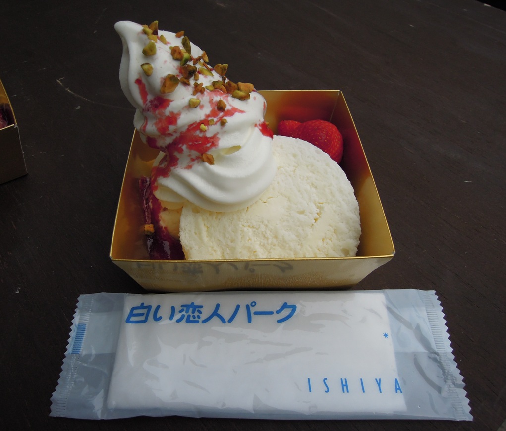 色んな出店がある中、おやつにロールケーキのアイスのせを食べました。