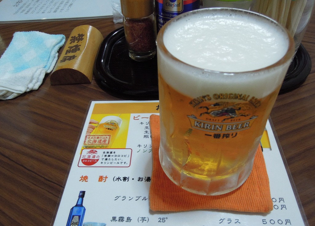 こちらのビールはキリンでした。そう言えばサッポロビールの工場の近く