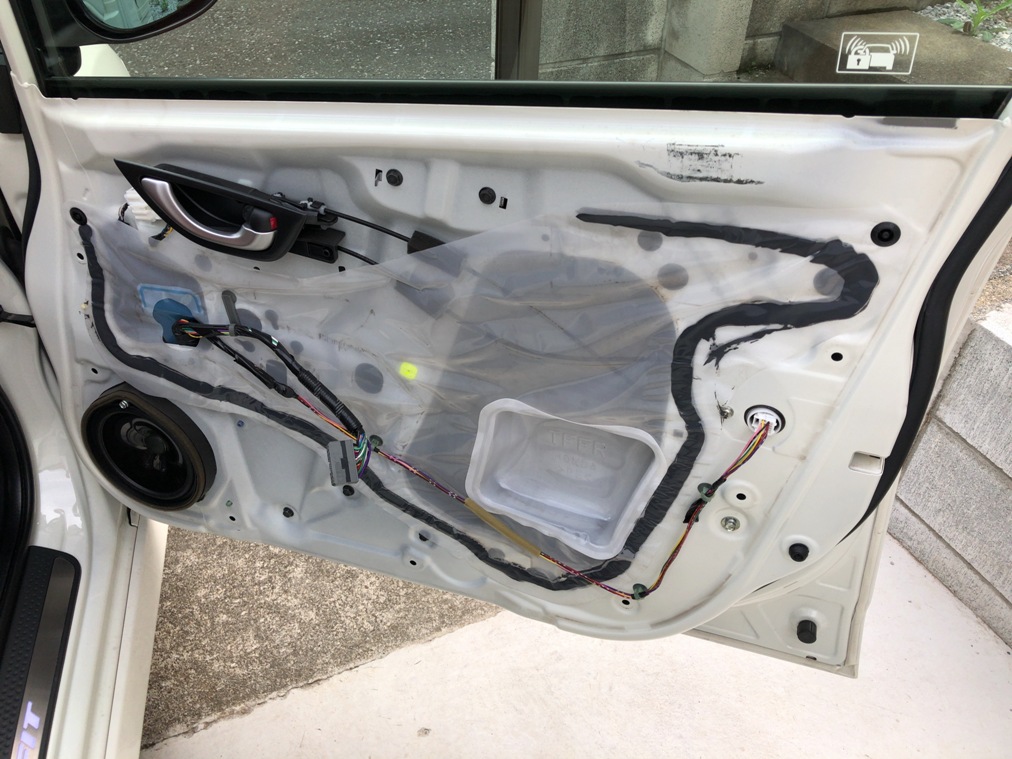 配線の引き込みはタイヤハウスからのサービスホールを使ってコルゲート
