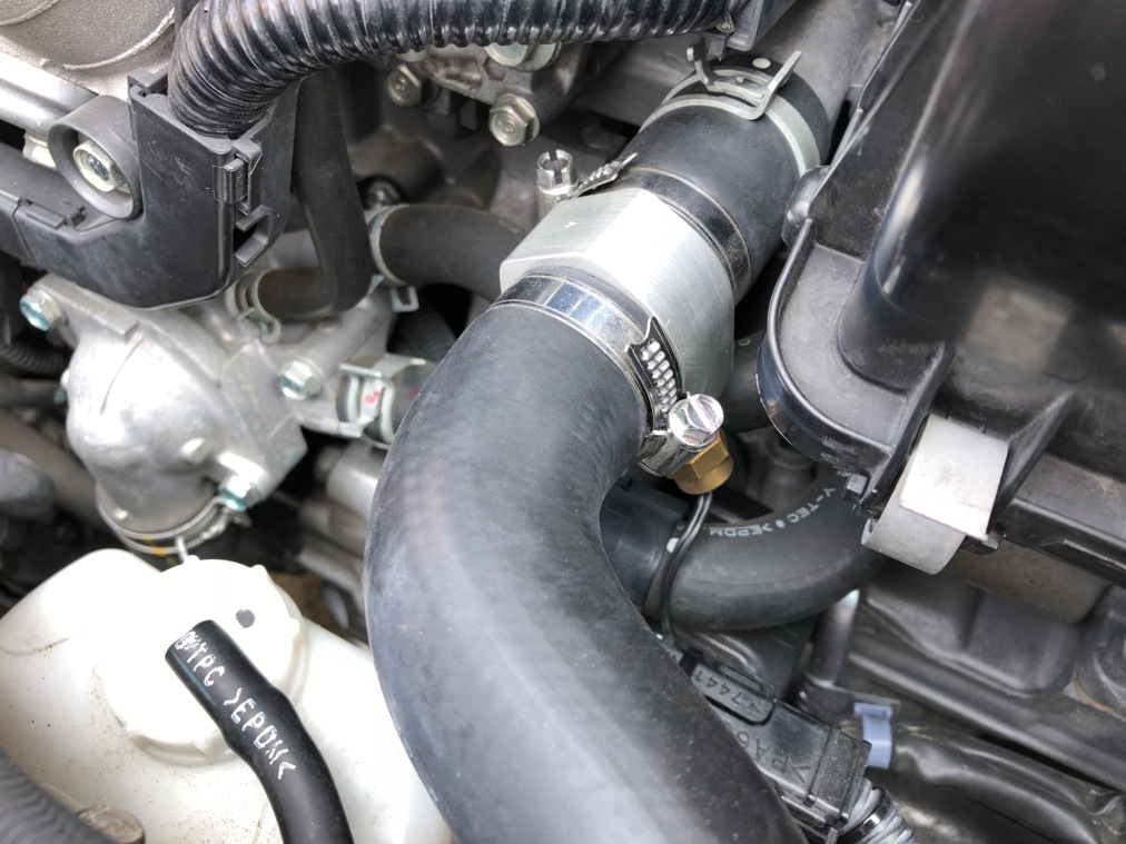 派手な色じゃなくアルミ無地の水温センサーアダプターを選んだせいかも。