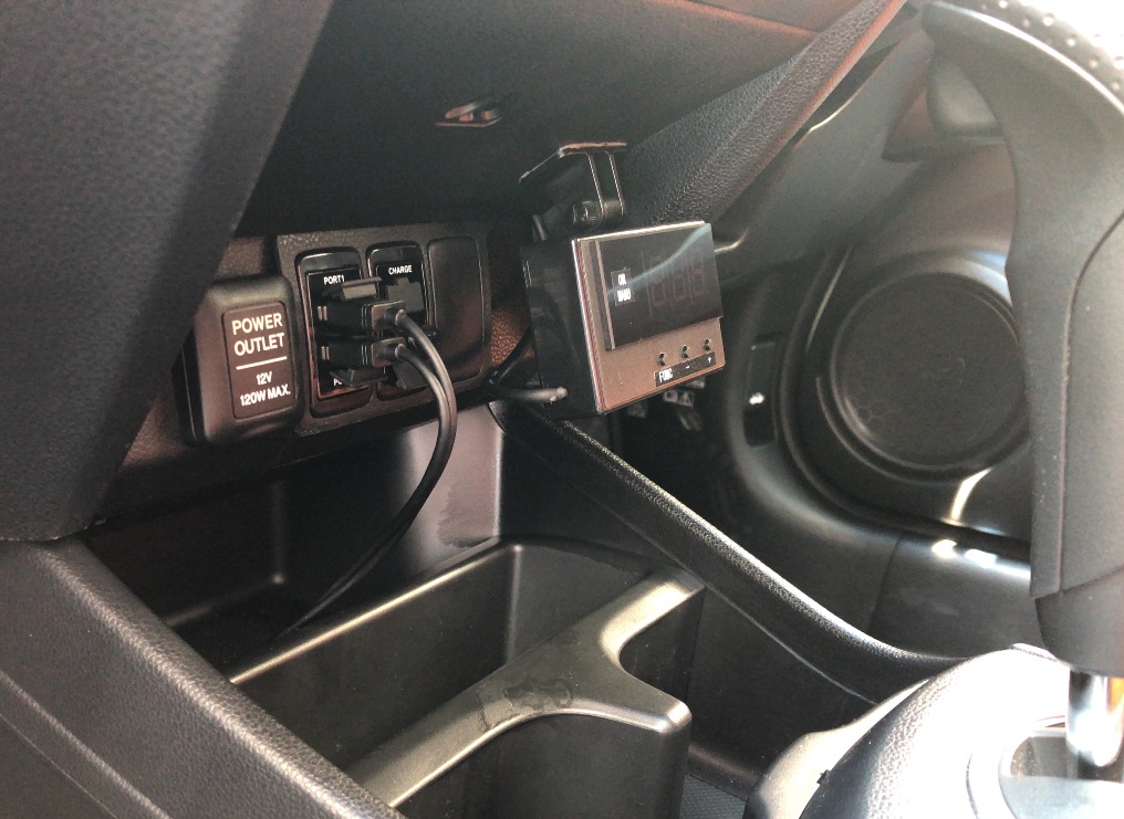 室内ユニットは助手席の足元にあるカバーの内側に入れ、配線はグローブ
