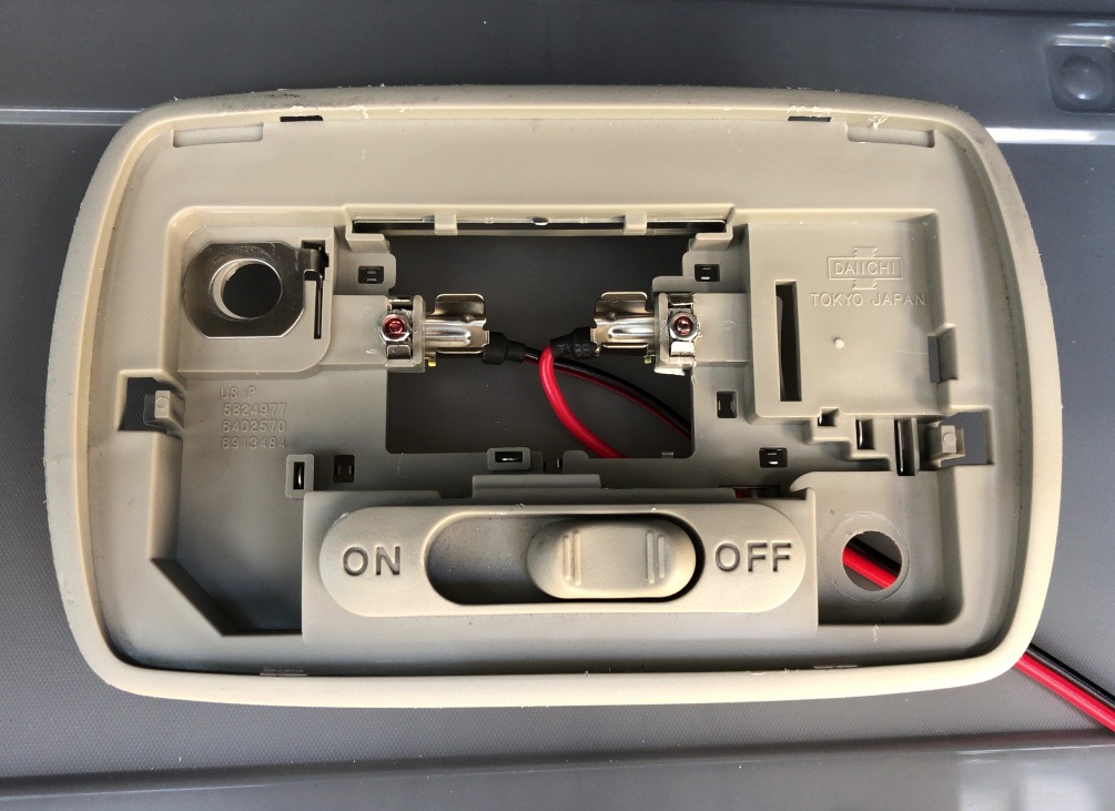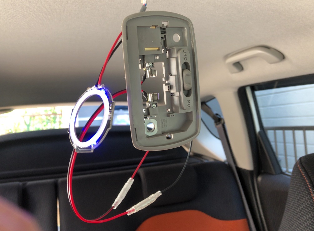 冒頭書いた通り、元の配線はいじらずルームランプユニットに細工をしました。